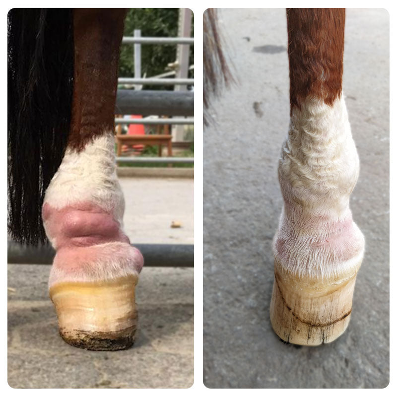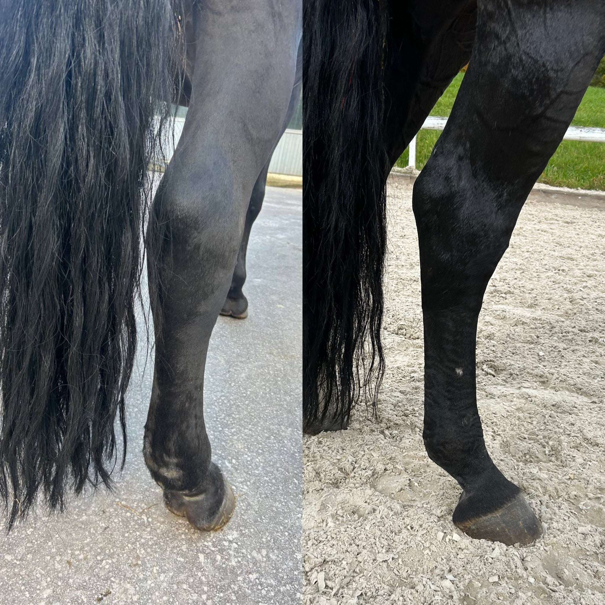 ich möchte Euch auf diesem Weg einfach nur Danke sagen!Meine inzwischen 24-jährige Friesenstute litt jahrelang unter chronischer Phlegmone. Das rechte Hinterbein war trotz viel Bewegung, bandagieren und Lymphdrainage teilweise doppelt so dick wie das linke und ich konnte ca. alle 4 Monate mit einem neuen Einschuss rechnen. Es ging so weit, dass ich irgendwann sogar in Betracht gezogen habe mein Pferd einschläfern zu lassen weil ich ihr die Schmerzen und die vielen Antibiotika nicht mehr zumuten wollte.