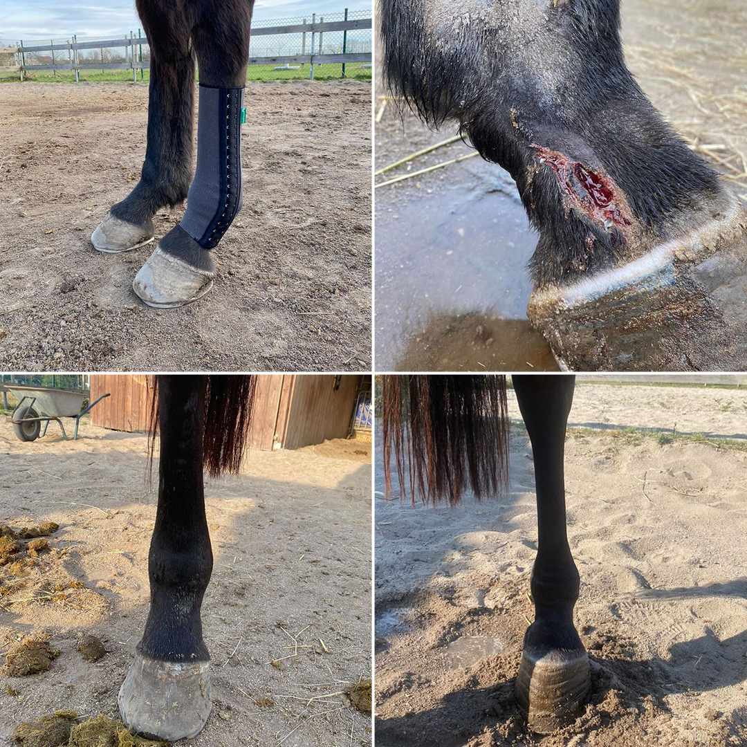 Meine Stute hatte sich einen Sehnenschaden und Sehnenscheidenentzündung am Vorderbein zugezogen. Nach der tierärztlichen Behandlung, dem Rat bei jeder Bewegung zu bandagieren und auf der Suche nach etwas Speziellem zur Unterstützung, bin ich auf euch gestoßen. Zudem hat meine Stute durch eine frühere schwere Verletzung an den Hinterbeinen kaputtes Bindegewebe, Gallen, ständig angelaufene Beine sowie eine große Narbe.