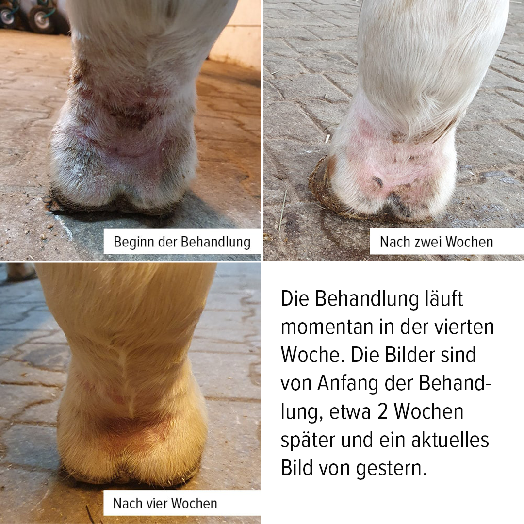 Ich bin absolut begeistert und überzeugt. Noch dazu einfach in der Anwendung. Endlich sind wir die Mauke los! Danke für das tolle Produkt! -