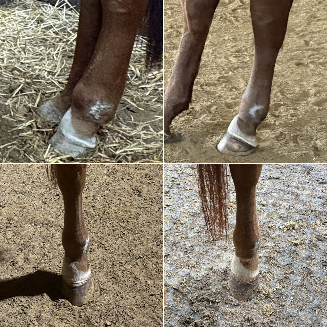 Das erste Bild ist außen rechts, dann von hinten und das letzte Bild innen rechts.Wir haben jetzt noch einen Osteo/Physio-Termin und machen eine Messung mit den Consteed-Hufschuhen, um sie bestmöglich unterstützen zu können.
